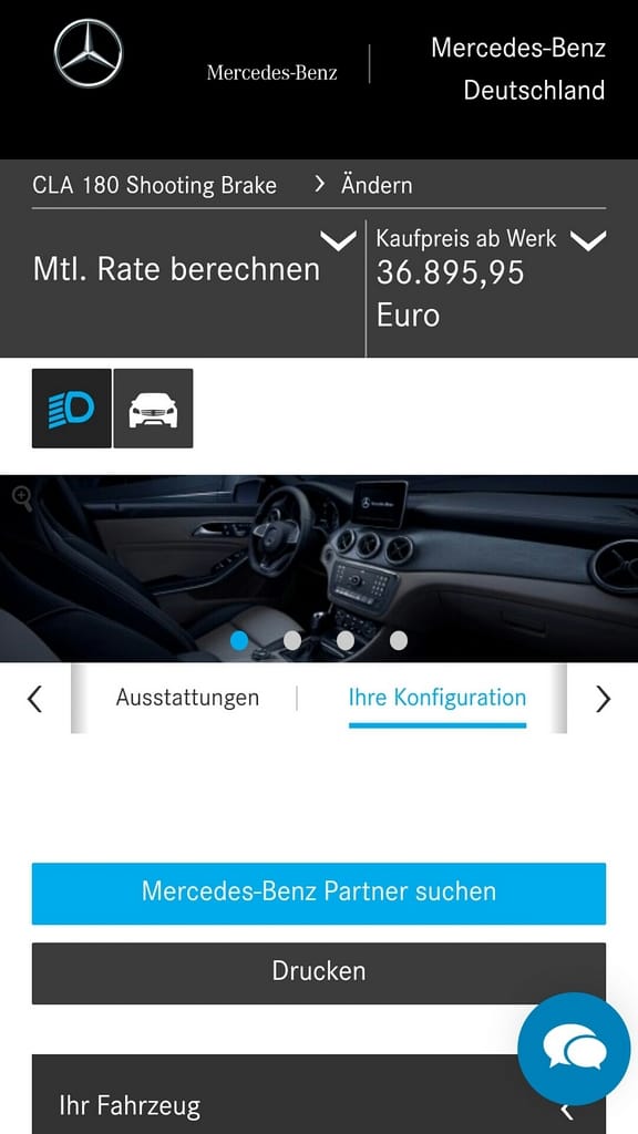 - Mercedes bietet einen Onepager: sehr angenehm, da man schnell Dinge ändern/wechseln kann, wenn dieser nur nicht so langsam wäre